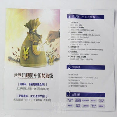 宣傳冊彩頁不干膠印刷,因為主次包裝印刷產品是以標識牌、產品標簽爲主,所以也被稱為商標logo包裝印刷。這類紙必不可少由紙制品制造廠預制構件。宣傳冊彩頁不干膠印刷,選用的是公共的復合型打印紙張。一般是在印刷工藝物的背面涂上一層不干膠,黏附在很容易就脫離的去膠紙上。印刷工藝物除打印紙張外,也有塑料薄膜、金屬材料箔。在印刷包裝之后利用刀線進行軋印,再剝掉空缺的一些不必要的部分,并在去膠紙上留有一定外觀設計的印刷物,在應用的時候將其制成品揭上來,黏貼到周轉材料或者產品上就可以。