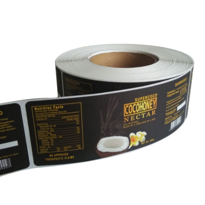 瓶裝食品標簽貼紙不干膠印刷,在當今快銷品日趨更新、更快、更醒目的觀念下,不干膠標簽各種材料和效果不僅能給包裝設計人員更大的想象空間,也作為產品的一部分。提供各類超透明、透明、亮白、珠光、霧面、亮銀、彩虹等效果的合成紙,BOPP和PE等優質薄膜不干膠高檔精美產品,標簽完美貼合瓶身,防水防潮不易脫落起翹。讓廠家越來越重視,雖為方寸之地,但對產品的銷售起著重要作用。