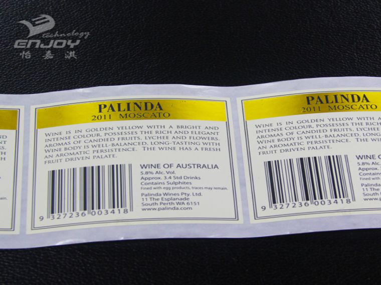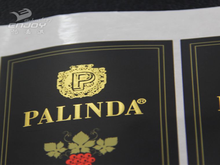 燙金不干膠貼紙表面:燙金標簽要給人以高貴、穩重的感覺,所以在印刷之后,還要進行一些后加工處理。例如在標志或一些裝飾性線條處,通過熱燙印的方式增加金銀效果;