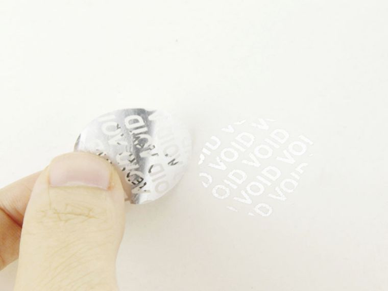 VOID防偽標(biāo)簽特性:揭開(kāi)標(biāo)簽后,分離出預(yù)先設(shè)計(jì)的圖案或文字(如“VOID”、“撕毀無(wú)效”、“已開(kāi)封”或客戶指定的其它圖案或文字)且無(wú)法復(fù)原;